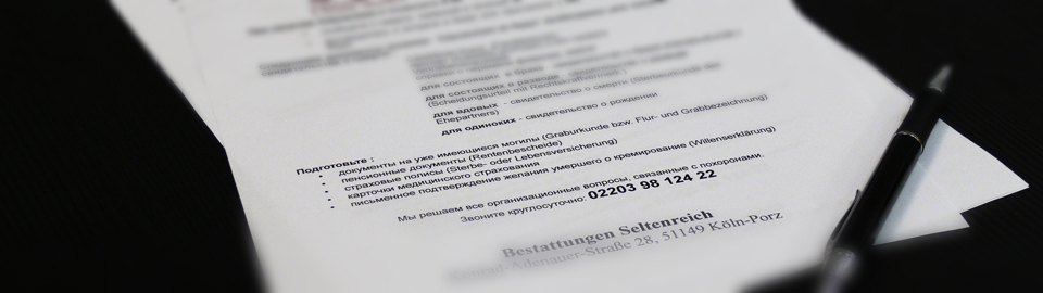 Ein persönliches Gespräch mit uns ist empfehlenswert. Wir stehen Ihnen 24 Stunden, Tag und Nacht, unter 02203 / 9812422 zur Verfügung.